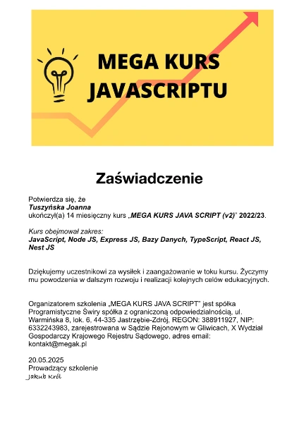 Nie sprzedaję stron internetowych. Projektuję systemy, które wspierają Twój biznes – od pierwszego kliknięcia klienta po zautomatyzowaną obsługę jego zapytań. Działam jak technologiczny partner, który myśli nie tylko o kodzie, ale o strategii i długofalowej efektywności.
